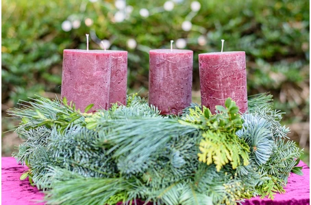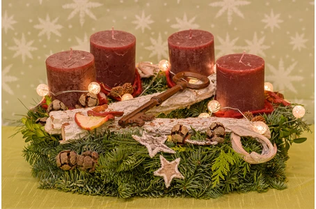 Adventskranz mit bordeauxfarbenen Kerzen inkl. individueller Dekoration